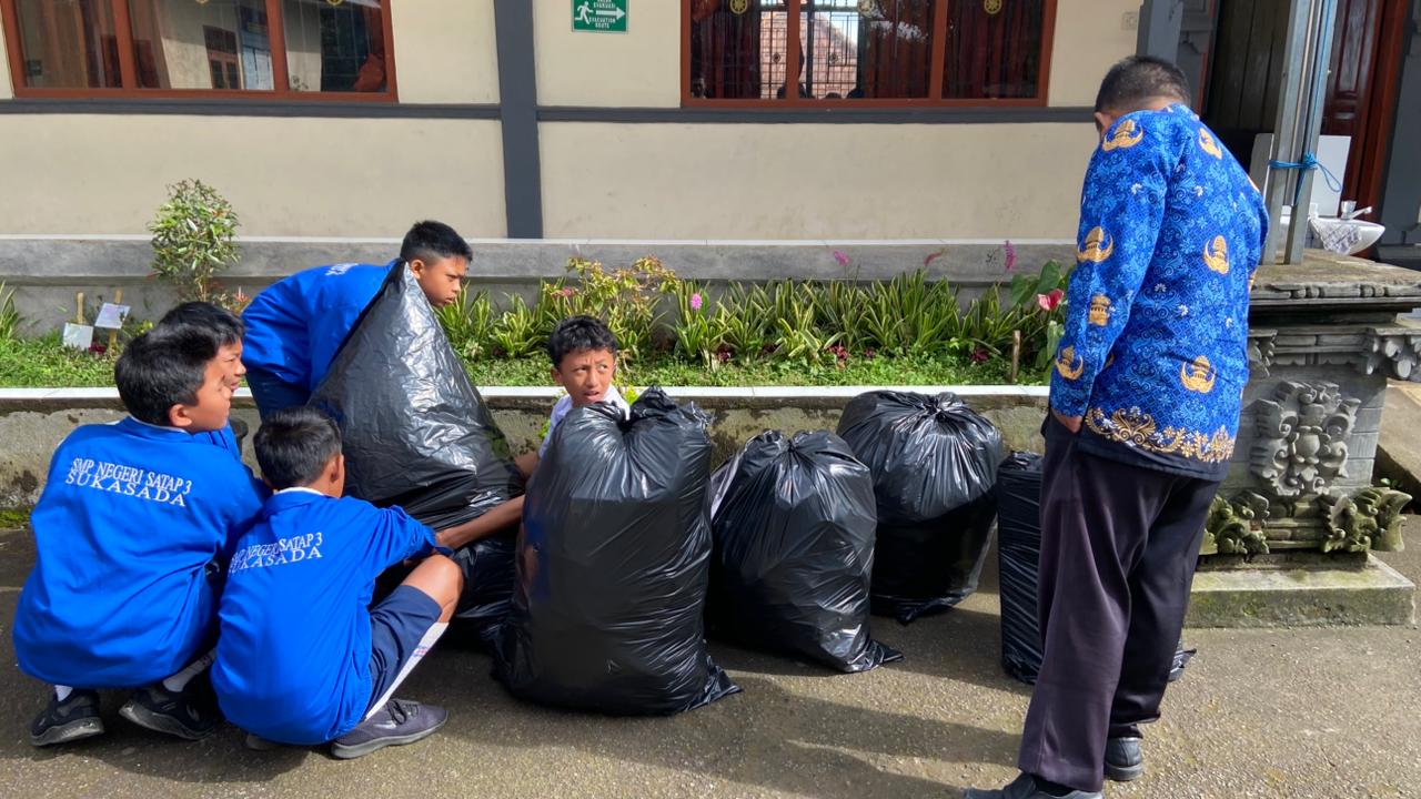 sampah yang ada di sekolah di kumpulkan dan di angkut untuk di buang di luar…