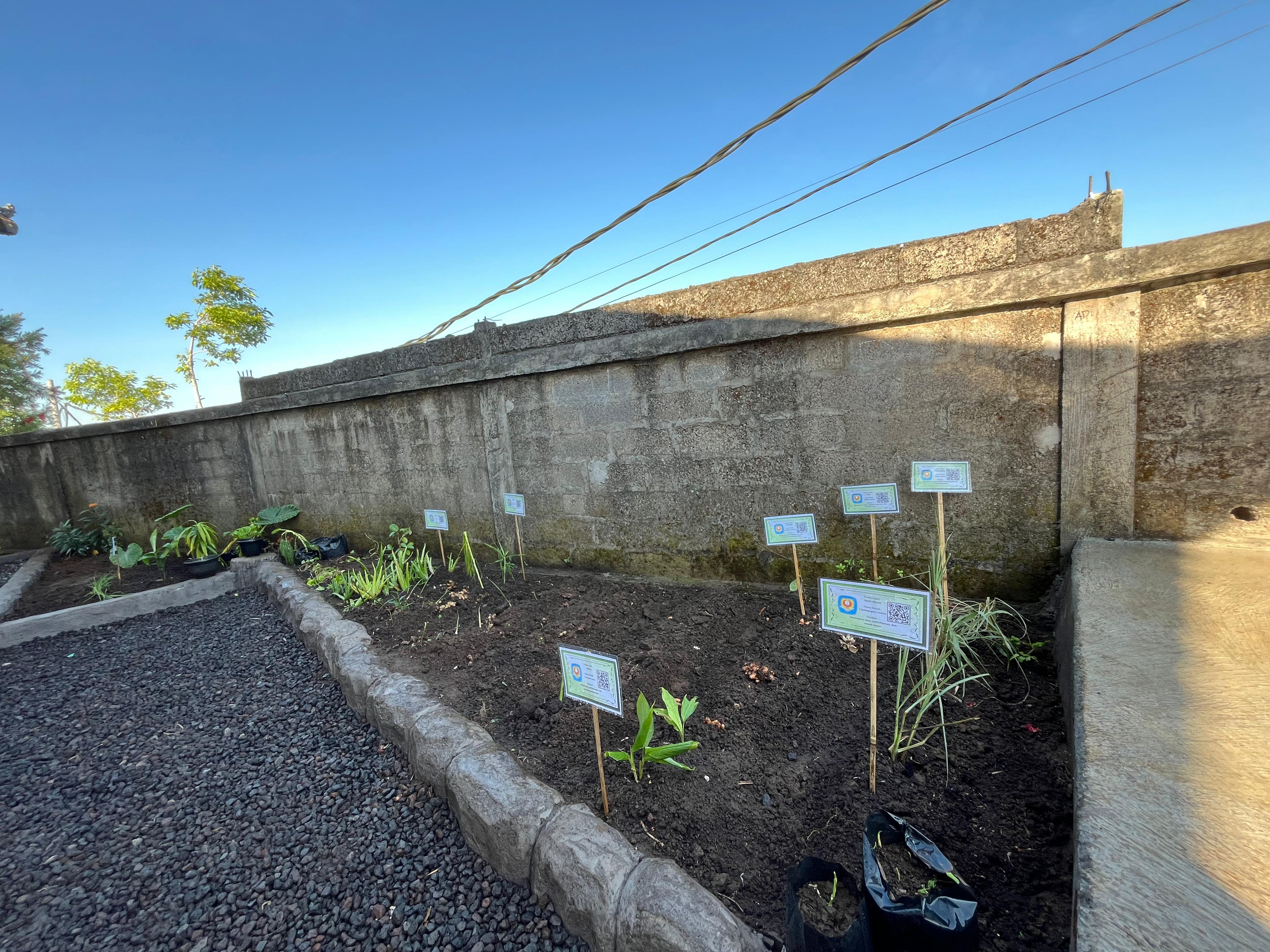Sekolah kami memiliki taman tanaman obat yang diberikan label untuk pengetahuan
