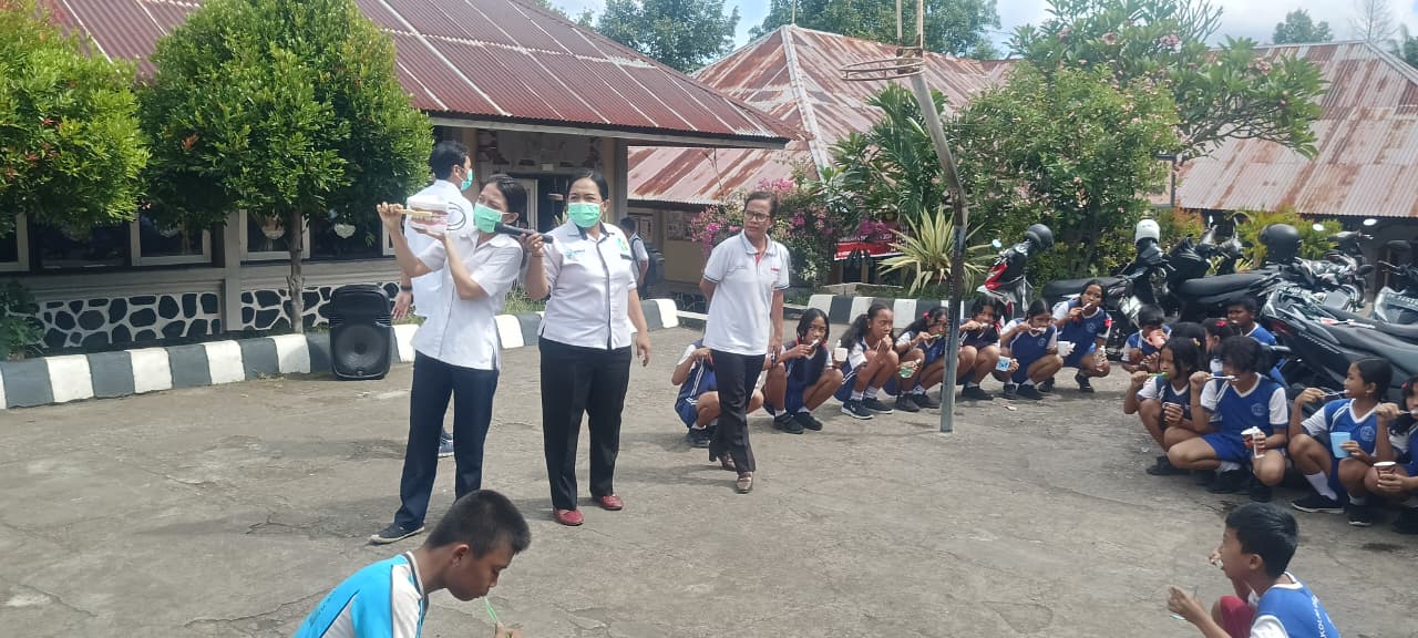 Penyuluhan kesehatan gigi dan kegiatan sikat gigi massal dilaksanakan di lapangan SD…