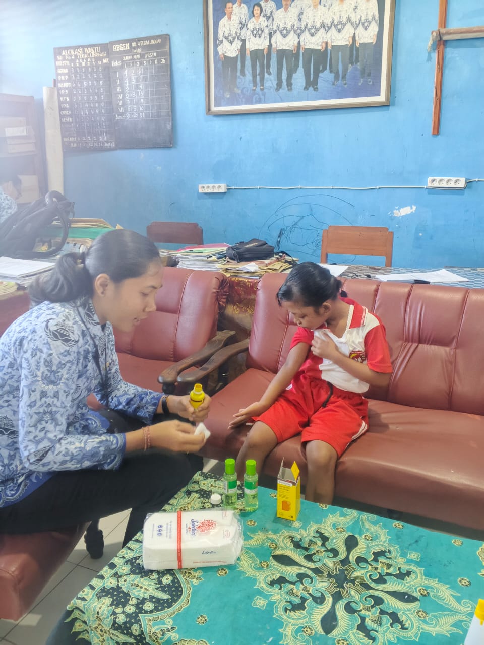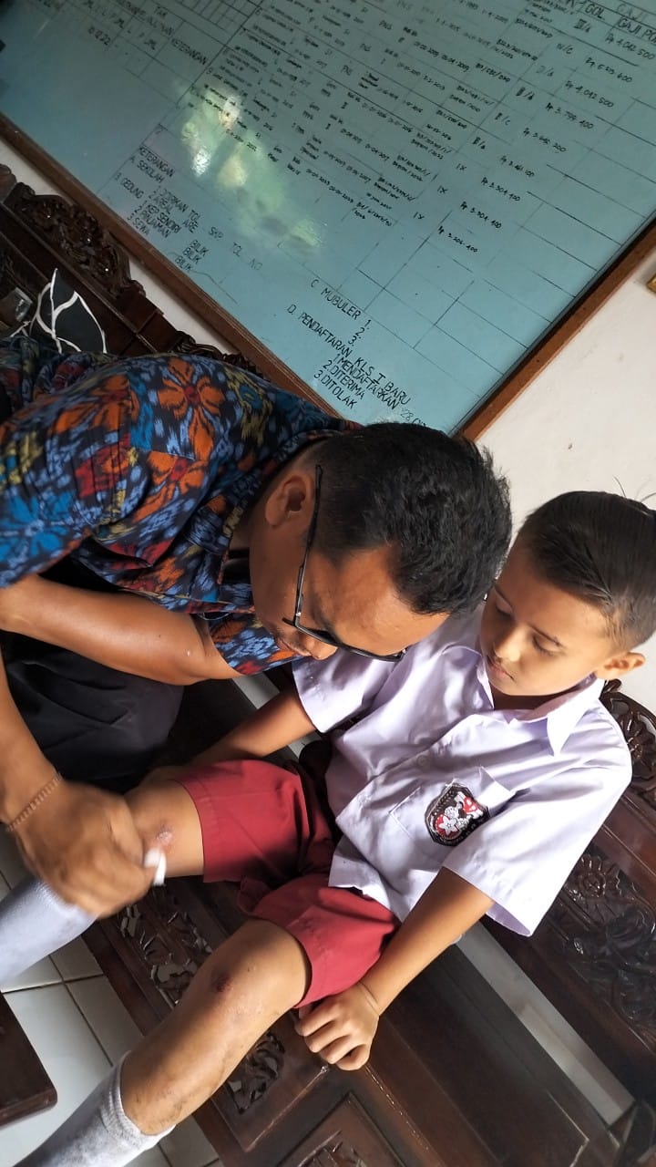 Memberikan obat ringan kepada siswa yang mengalami cedera/luka di sekolah