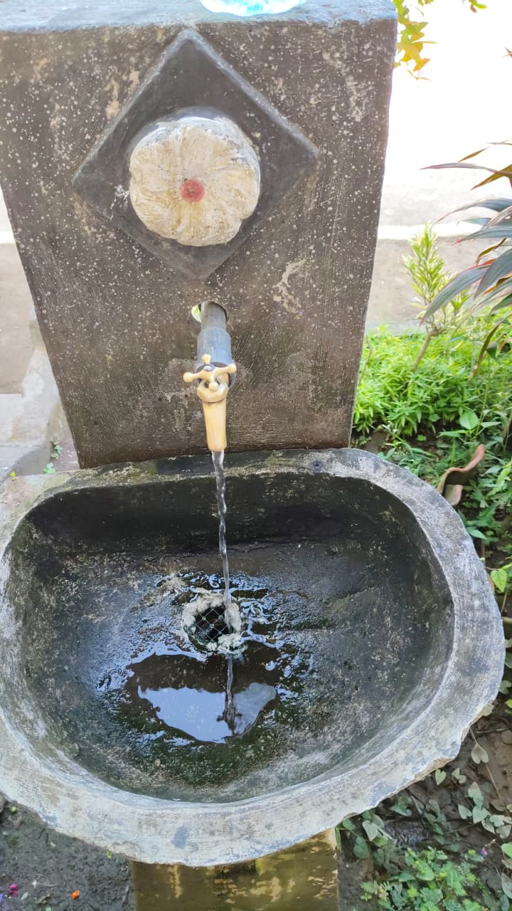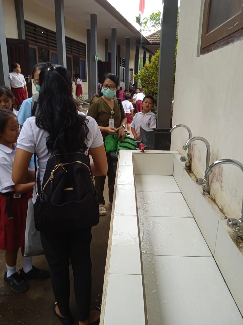 Disekolah mempunyai 4 titik tempat cuci tangan dengan air mengalir/keran