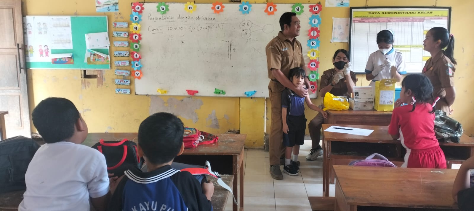 Pelaksanaan kegiatan pemberian obat cacing dari pihak puskesmas banjar