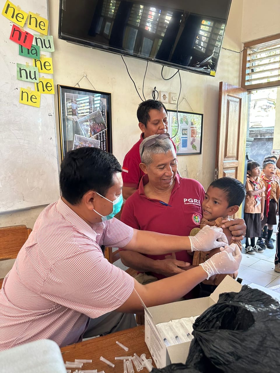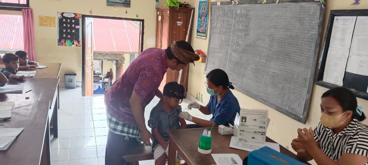 Puskesmas membantu dalam pendidikan di sekolah dengan mengadakan vaksin.